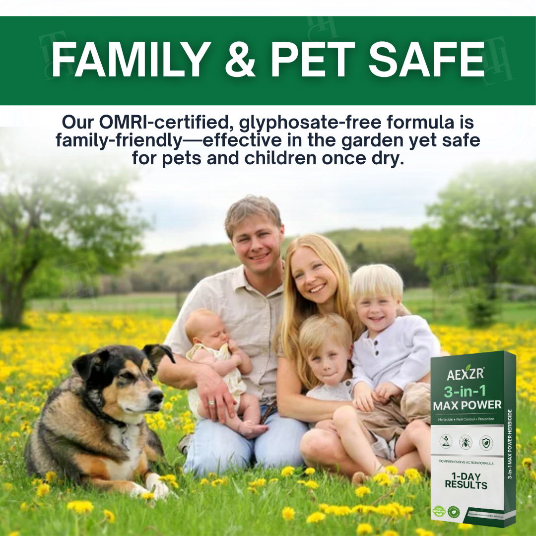 Don’t let stubborn weeds and pests win. With AEXZR® 3-in-1 Max Power Herbicide, you get fast results, long-lasting protection, and peace of mind knowing your family and pets are safe.