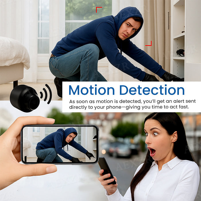 Criminals don’t always come when you’re home—and they certainly don’t announce themselves. That’s why the AEXZR® Mini Wifi Camera is designed to stay out of sight while keeping an eye on everything. Small enough to go unnoticed, powerful enough to capture everything that matters.