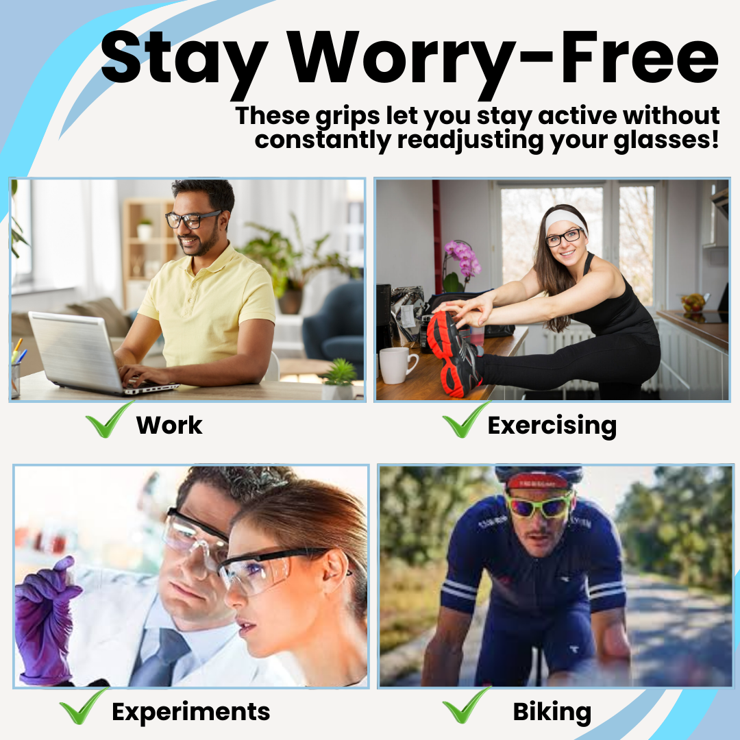 Tired of constantly readjusting your glasses every time you move or slightly tilt your head? Now, you can say goodbye to those frustrating moments with CZTICLE® Non-Slip Glasses Grips! These revolutionary grips are designed to keep your glasses securely in place, so you can move freely and confidently—whether you're at work, at play, or just going about your day.